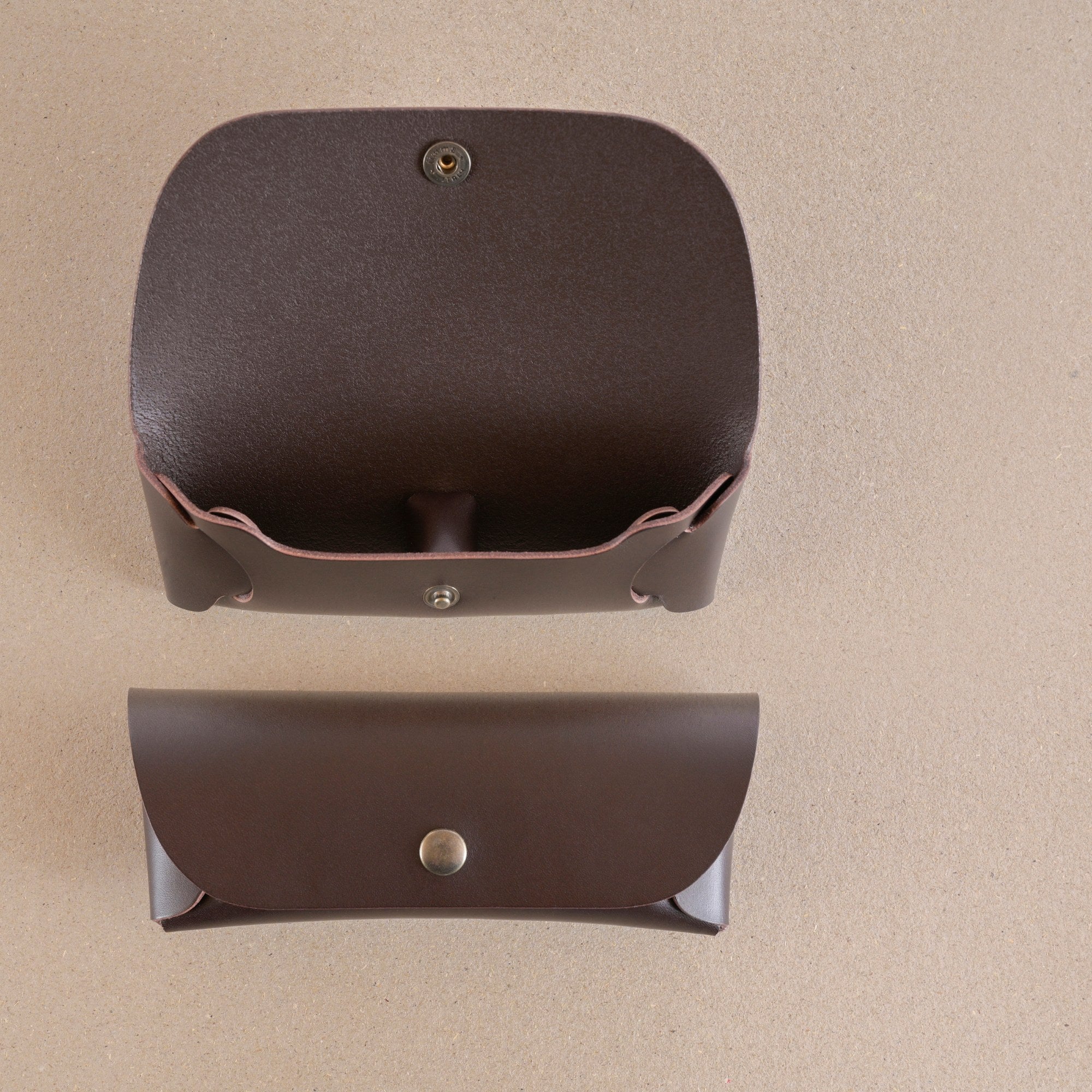 Cut from a single piece of thick leather and folded by hand, this glasses case honors traditional craftsmanship. No glue, no stitching—just lasting strength built to last for years.
